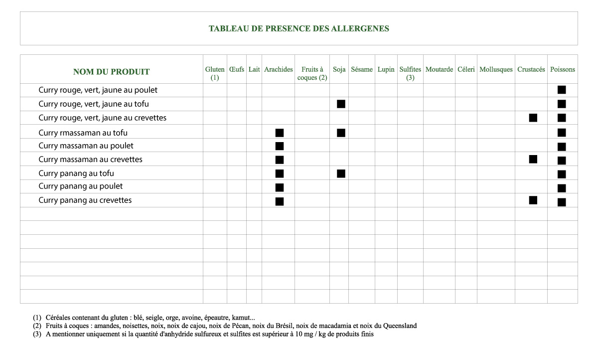 Basse calorie, sans gluten, sans lactose, Végétarienne et végan (pour les curry au tofu). Voir les allergènes