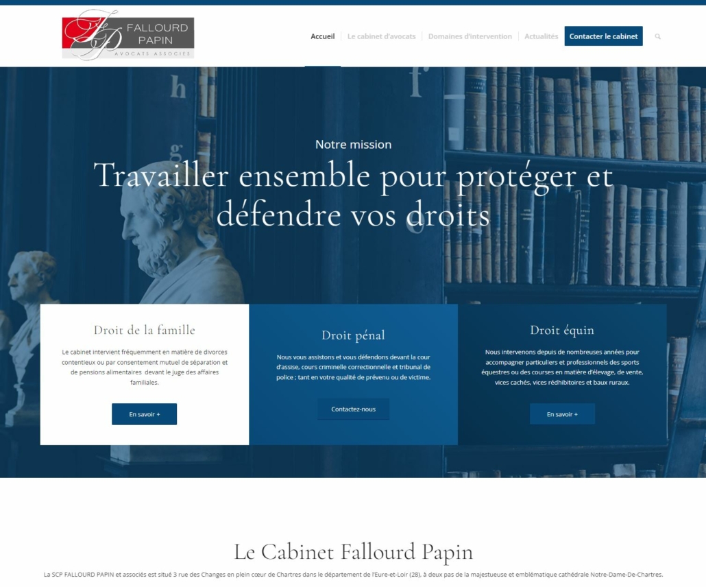 Et pourquoi les cabinets d’avocats n’auraient par le droit à un site internet élégant et fonctionnel ?Le Cabinet SCP Fallourd Papin a confié à notre agence Blackfish.fr le soin de réaliser son site internet. Nous avons pu mettre en pratique nos compétences graphiques et apporter la valeur ajoutée de la toute-puissance de l’IA pour toute la partie étude de marché, marketing, optimisation de contenu et SEO.